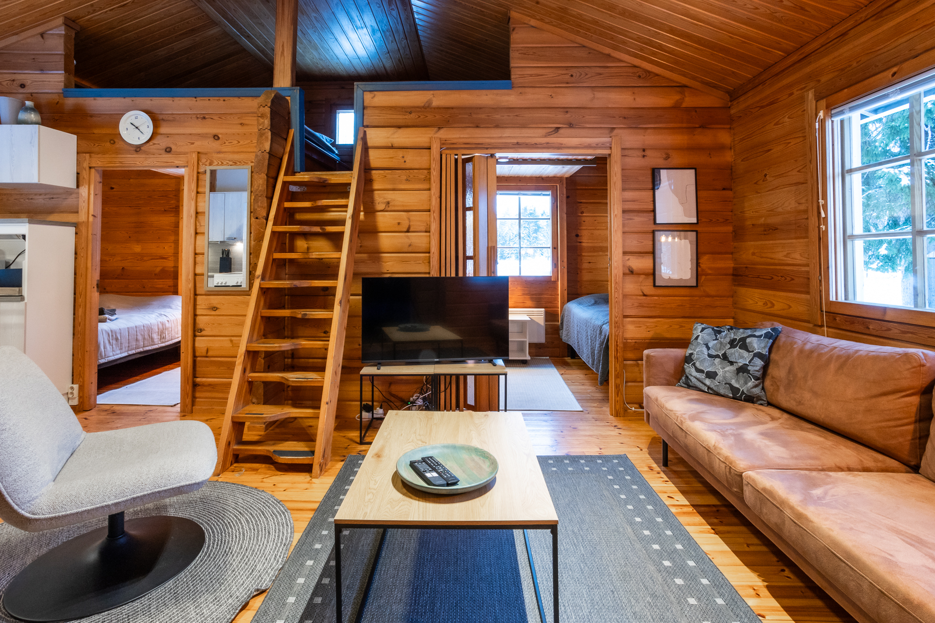 Nauti mökkimme mukavuuksista vuodenajasta riippumatta. Ilmalämpöpumppu viilennystoiminnolla ja takka takaavat miellyttävän lämpötilan ympäri vuoden.